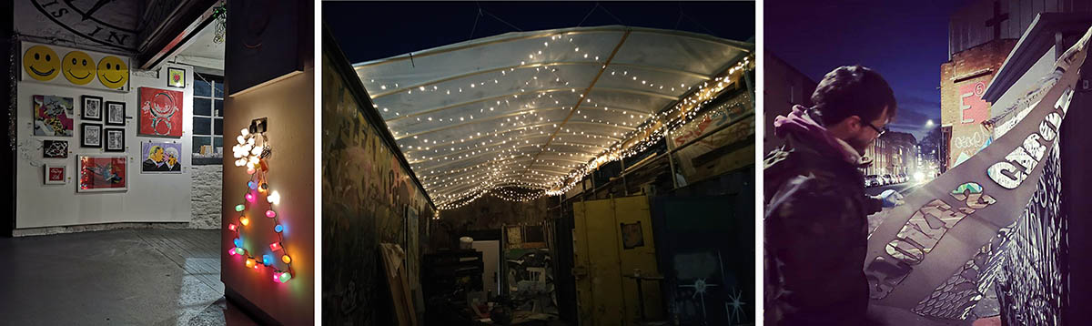 Rita Lynch and Troy Ellis jammed together in our yard under brand new fairy lights, to launch our annual Outdoor Exhibition. We ran a Christmas market and art show; released two more mugs (Use Your Vote! and Trans Rights); gave out gallons of mulled cider; painted an eco-warning on the M32; stepped up our tent & blanket distribution and received enough donations to fix our sewing machine for clothing repair workshops next year.