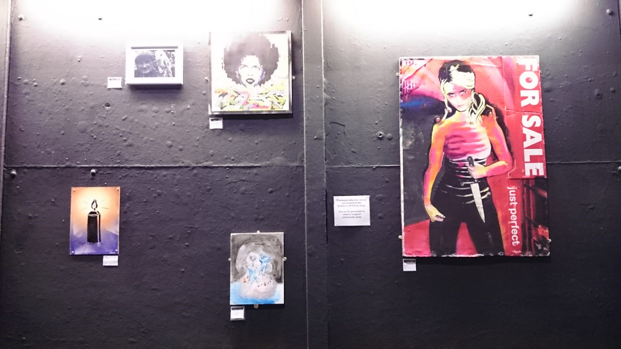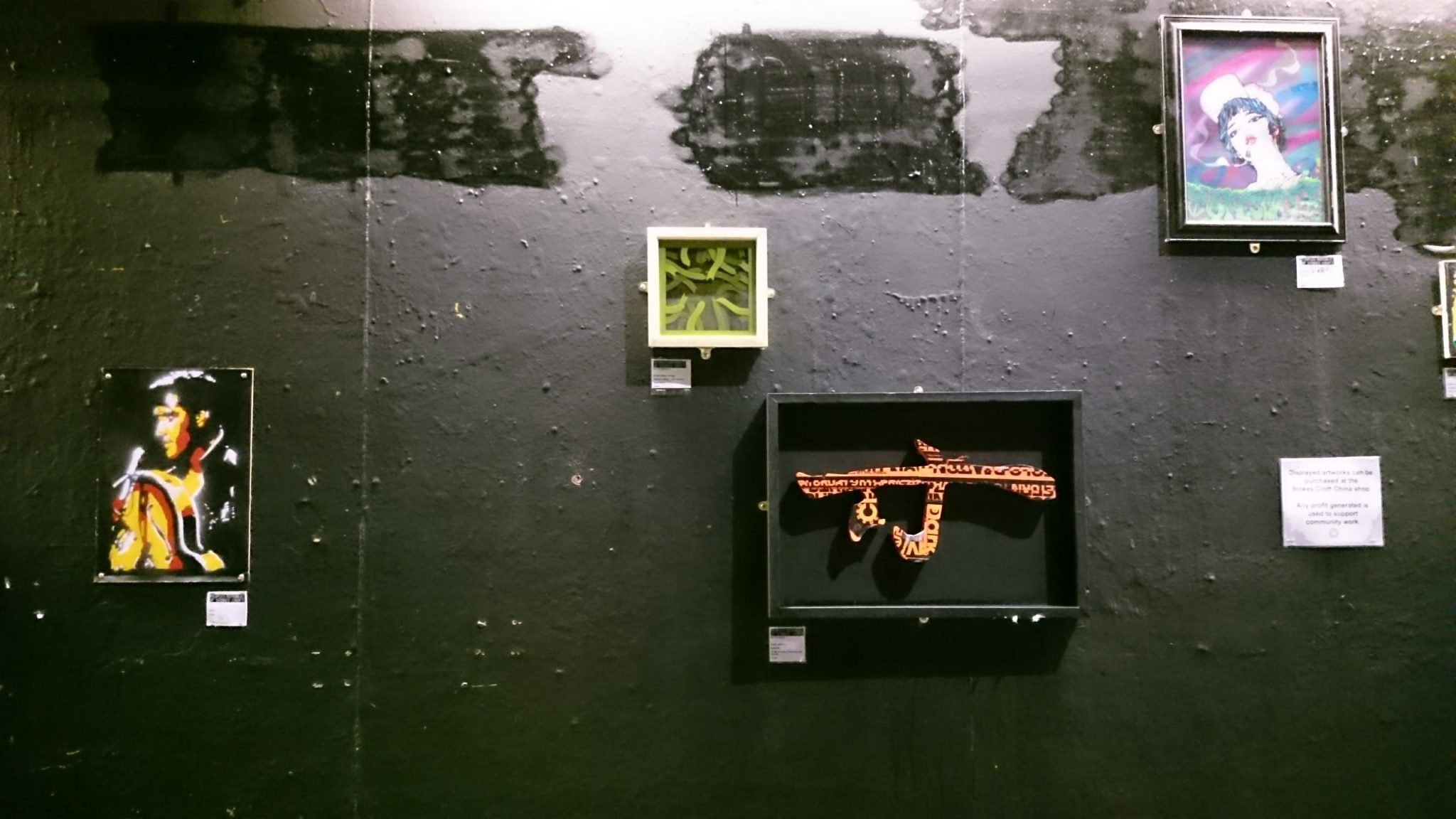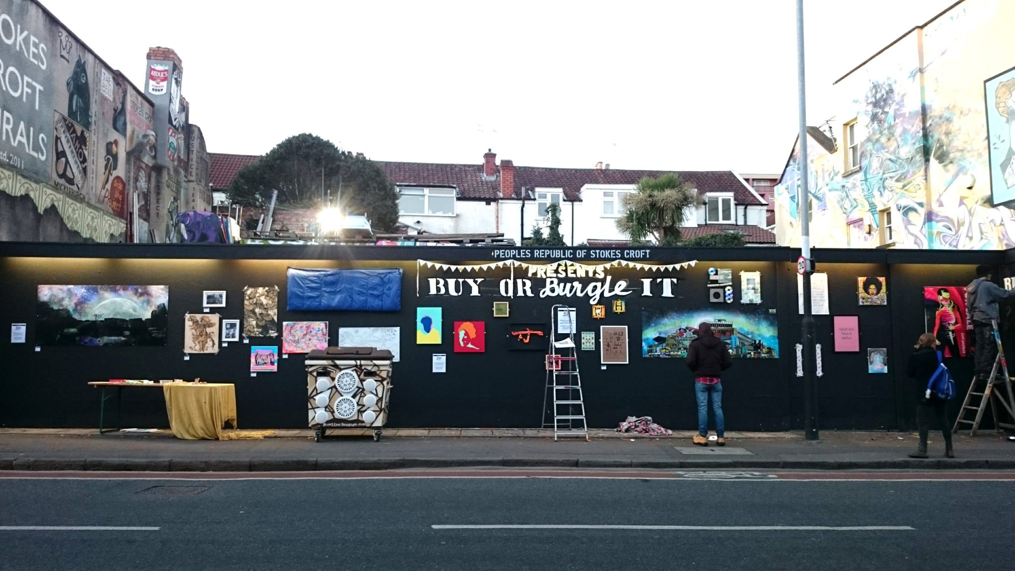 Buy or Burgle It was designed to provide an outlet for aspiring and established artists to showcase and sell their work, and to offer to the public the opportunity to purchase artworks at an affordable price. Displayed artworks could be purchased at the Stokes Croft China shop.