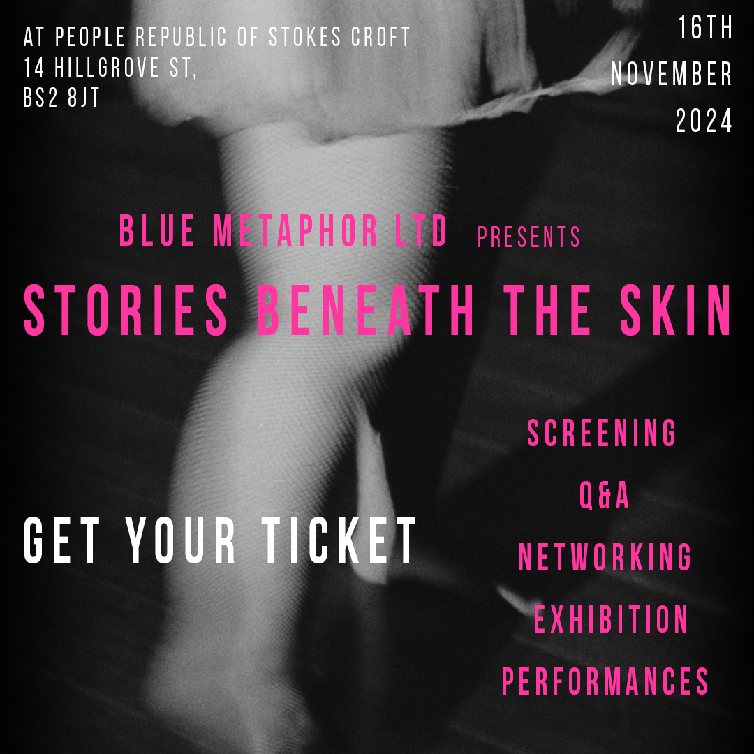 Blue Metaphor Ltd presents “Stories beneath the skin”, the first of a series of themed events bringing all art forms together, with filmmaking at the center. Led by Bristol -based producer and director Sheherazade Bodin and owner of Blue Metaphor Ltd, the production company aims to help filmmakers, writers and any creative voices develop their projects portraying social and/or cultural matters. This event is open to all creatives and those with passion projects looking for production support. In particular, those with noisy or misunderstood voices, looking to share their stories for greater impact!