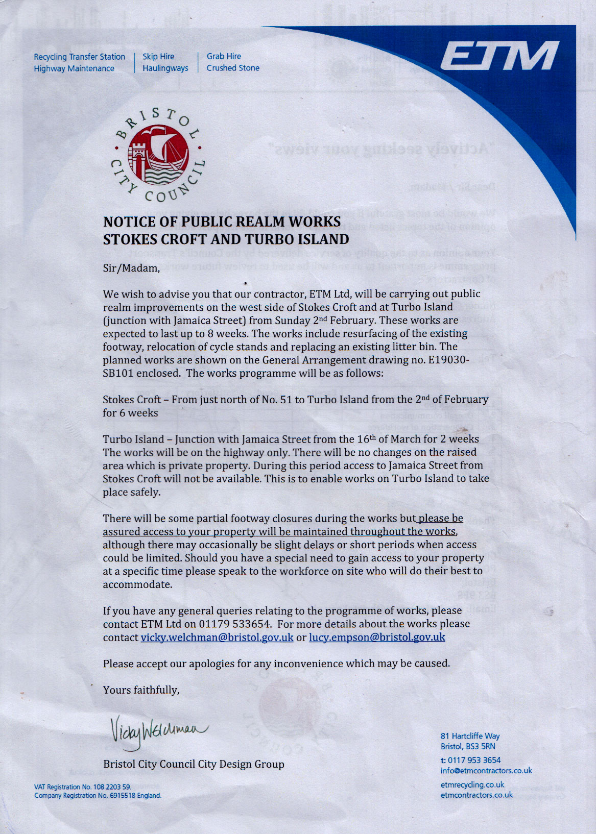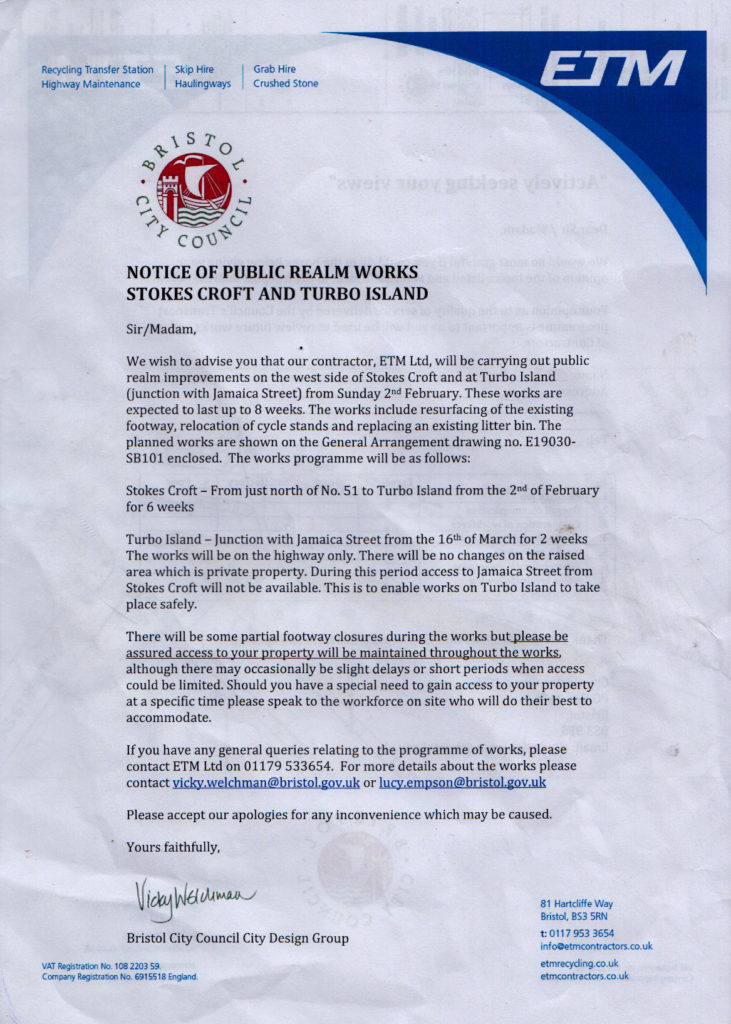 And what about the ‘paving improvements’ that have dug up half of Stokes Croft at the moment?