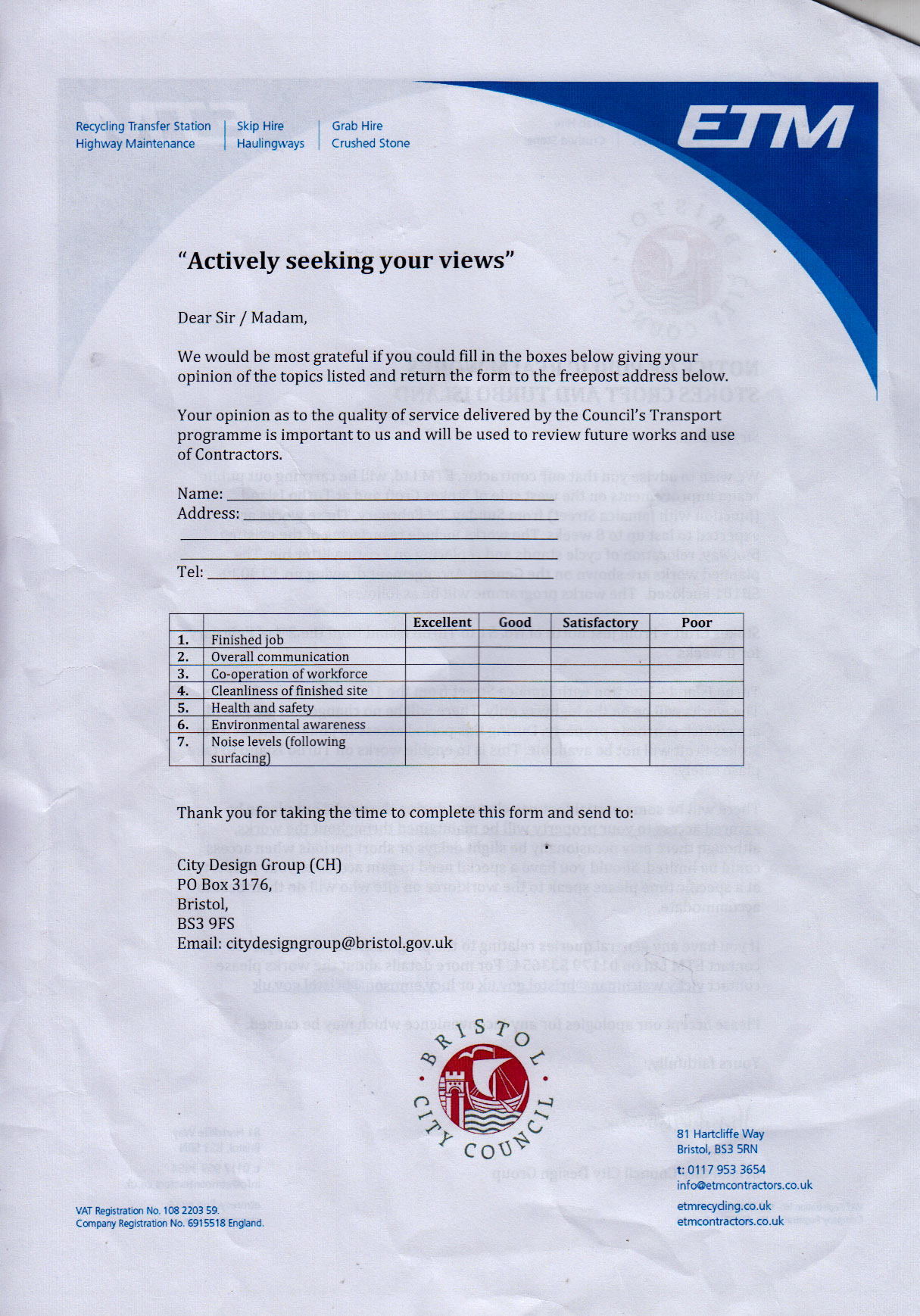 We received notice of the works (which seem to be quite unnecessary) with an invitation to give feedback, but do you remember 10 years ago when there would have been a public consultation before that kind of public money was spent in Bristol?