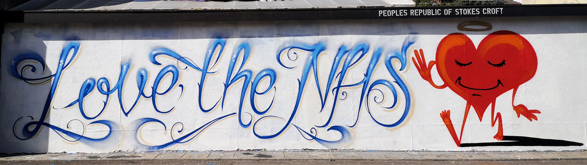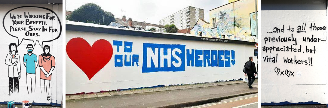 In the last week or two (early April 2020) we have been collaborating with Dr John Lee of the University of Bristol, on a COVID-19 #medicineonthewalls project. Using our outdoor gallery wall, and our street-art friends, we’re making a video-graff message of public health – with our own take.
