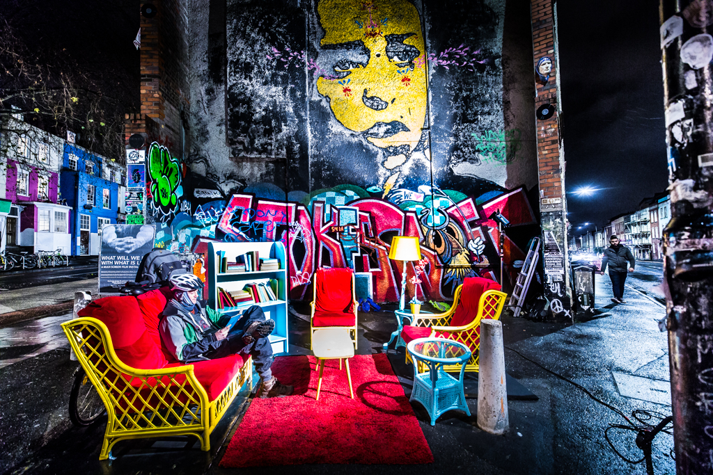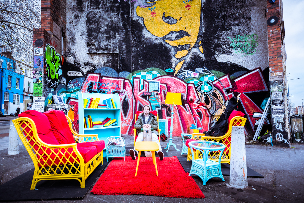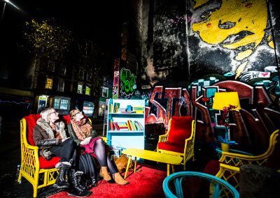 Just as the original 24H OUR CITY space was an invitation to people to come and rest, to make themselves at home, to step away from the hustle and bustle of their daily lives and to find a sense of belonging in the street, so was this special twenty-four-hour exhibition opening an opportunity to connect with the people of the Croft, to their stories and to write another memorable day into the colourful history of the Stokes Croft we love.