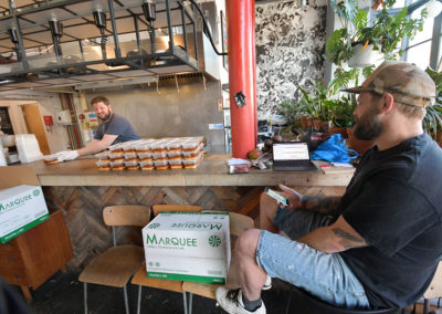 We also made an area of the cafe available as a food bank where people could donate or request groceries.