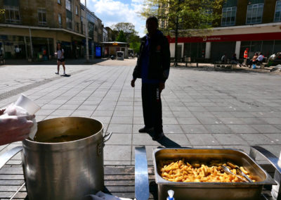 Some of the food is distributed fresh and hot to rough sleepers in the area, the rest is frozen and distributed to vulnerable households that have registered for support. While we will prioritise need in our local neighbourhood, we are joining a city wide effort to tackle hunger and we will make sure no food is wasted.