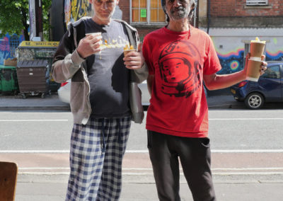 Covid precautions meant this was a take away service (with weather-dependent outdoor seating), but our long term vision is to develop this cafe into a shared eating space where everyone can sit and eat together. A space to provide the kind of affordable community hub that Stokes Croft really needs.