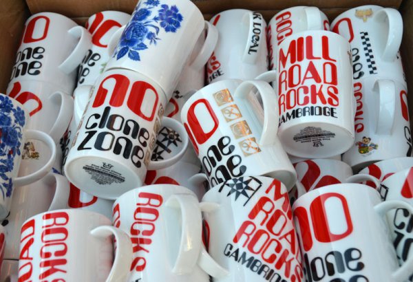 We also offer a selection of Fine English Bone Chinamugs by Stokes Croft China from just a fiver. We also offer a design service for other campaigns. See below mugs made in Stokes Croft for the Mill Road Cambridge campaign.