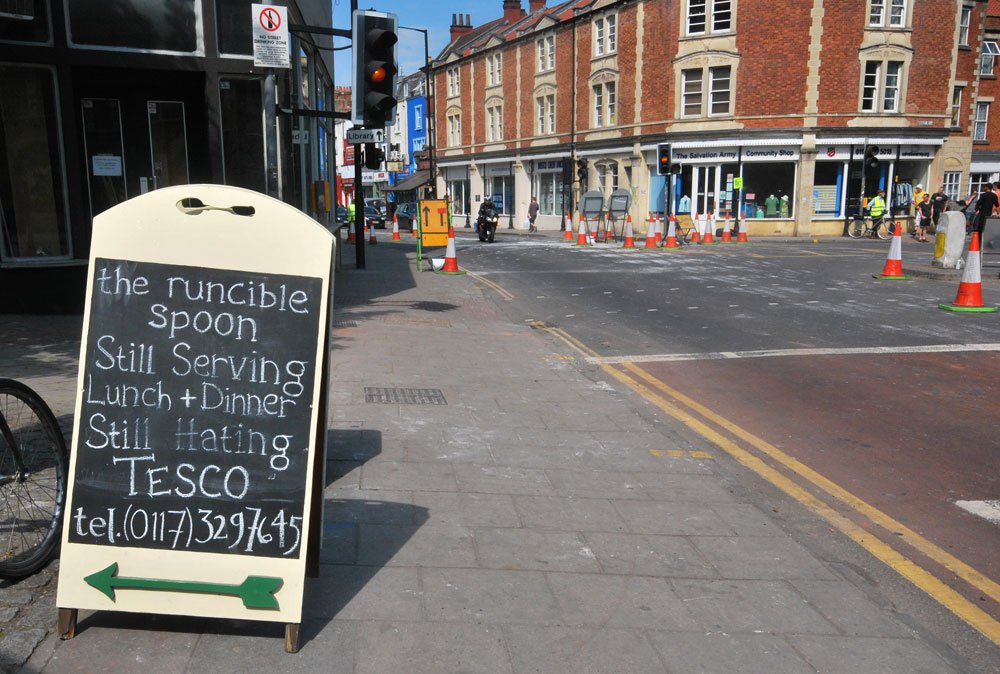 After the shameful lack of courage shown by our planners and City Councillors, it appears that Tesco have gained official permission to open a branch in Cheltenham Road, on the Stokes Croft/ Montpelier border. They still do not have permission for a liquor licence, and there is a possibility of a challenge by Judicial Review.