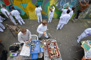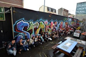 The site is home to three shipping containers, and an array of equipment and materials. The Bear, the Dolly against fossil fuels: you name it, it was built right here. Within the Yard there is a whole practice wall, and can be used for graffiti workshops.