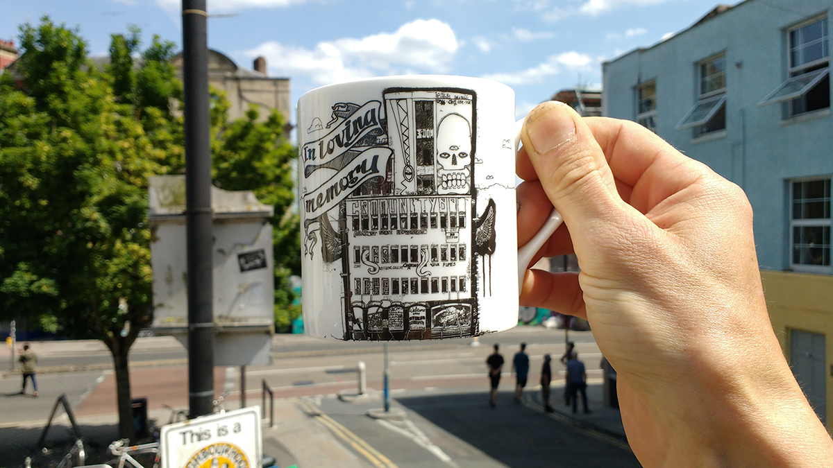 When Westmoreland was finally pulled down in November of 2018 the PRSC produced a print ‘In Loving Memory’ of the icon, followed by a mug of the same design, and filled the image with depictions of the building’s various uses and murals.